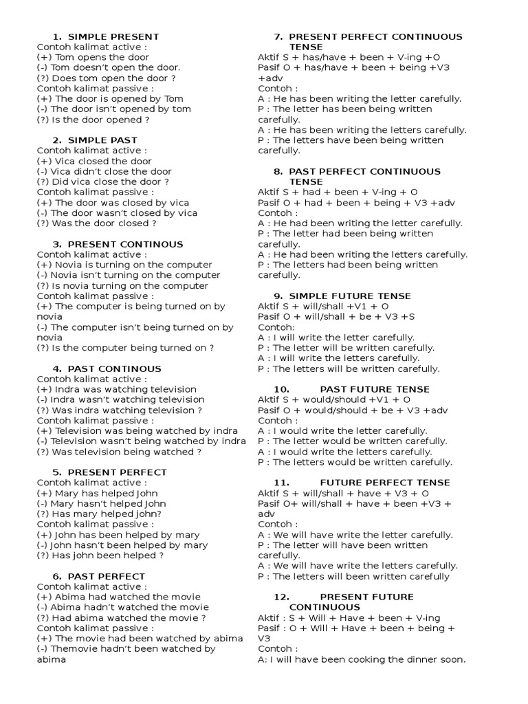 Rumus Passive Voice Dalam 16 Tenses | Grammatical Tense | Grammar