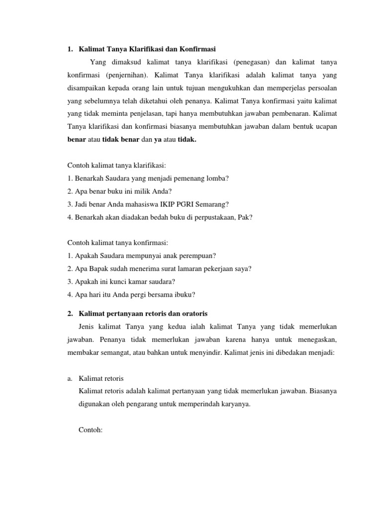Kalimat Tanya Klarifikasi Dan Konfirmasi