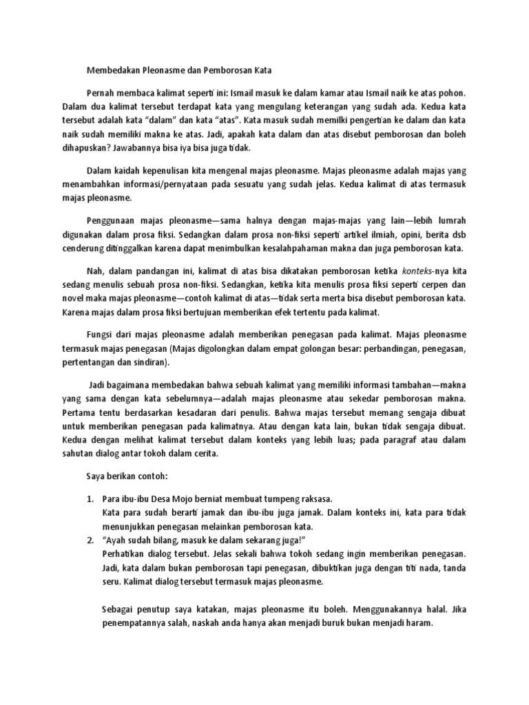 Contoh Majas Pleonasme Singkat Beserta Penjelasannya