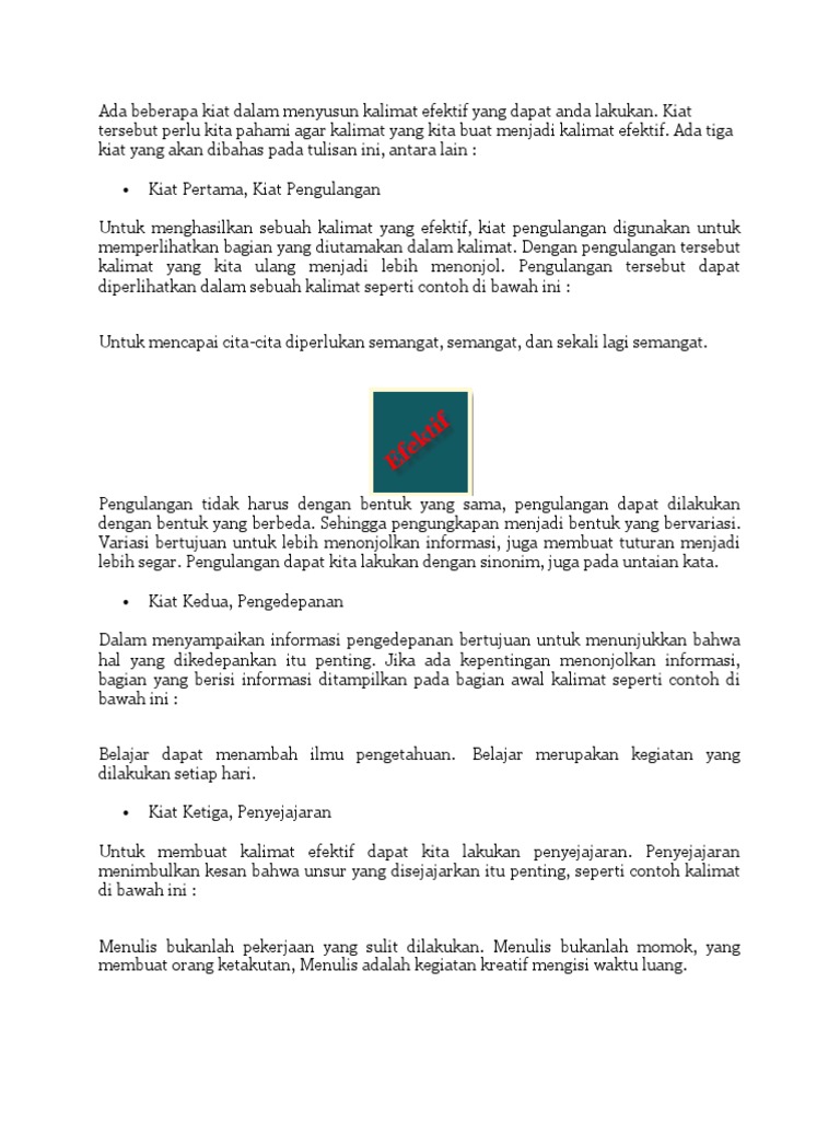 DOC) Kalimat Efektif (Pengertian, Ciri-ciri, Contoh | Ulfah Lathifah - Academia.edu