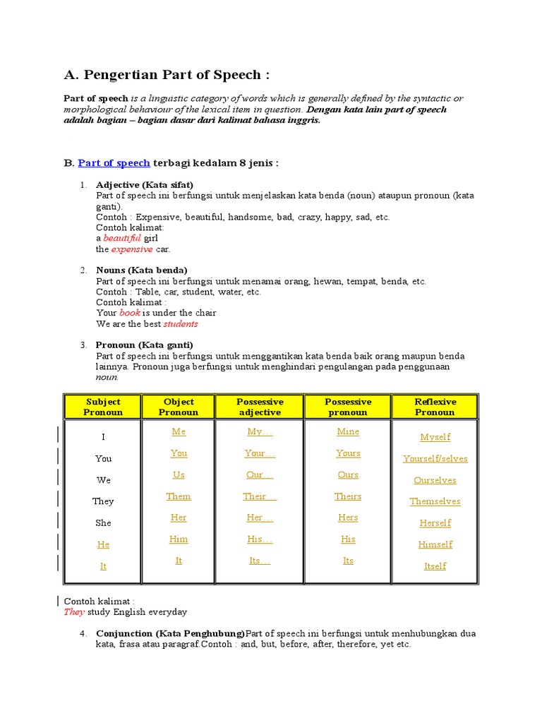 Pengertian, 8 Macam Parts of Speech dan Contoh Kalimat