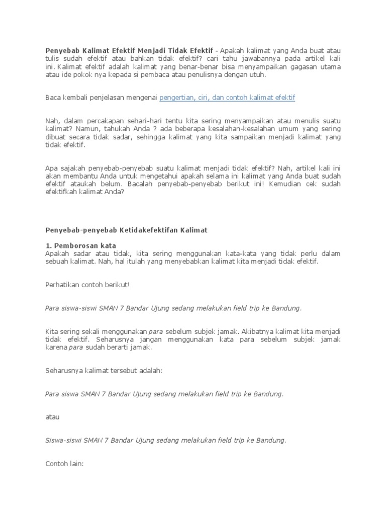 Penyebab Kalimat Efektif Menjadi Tidak Efektif - Apakah kalimat yang Anda buat atau