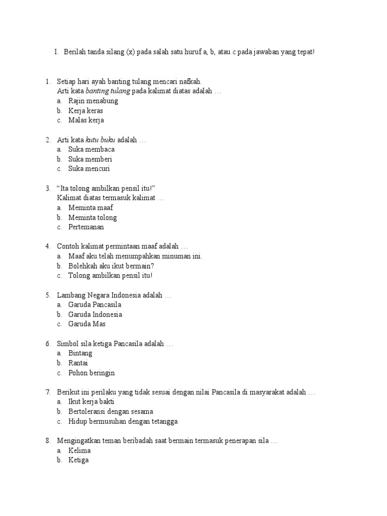 Berilah tanda silang (x) pada huruf a, b, atau c didepan jawaban yang benar !