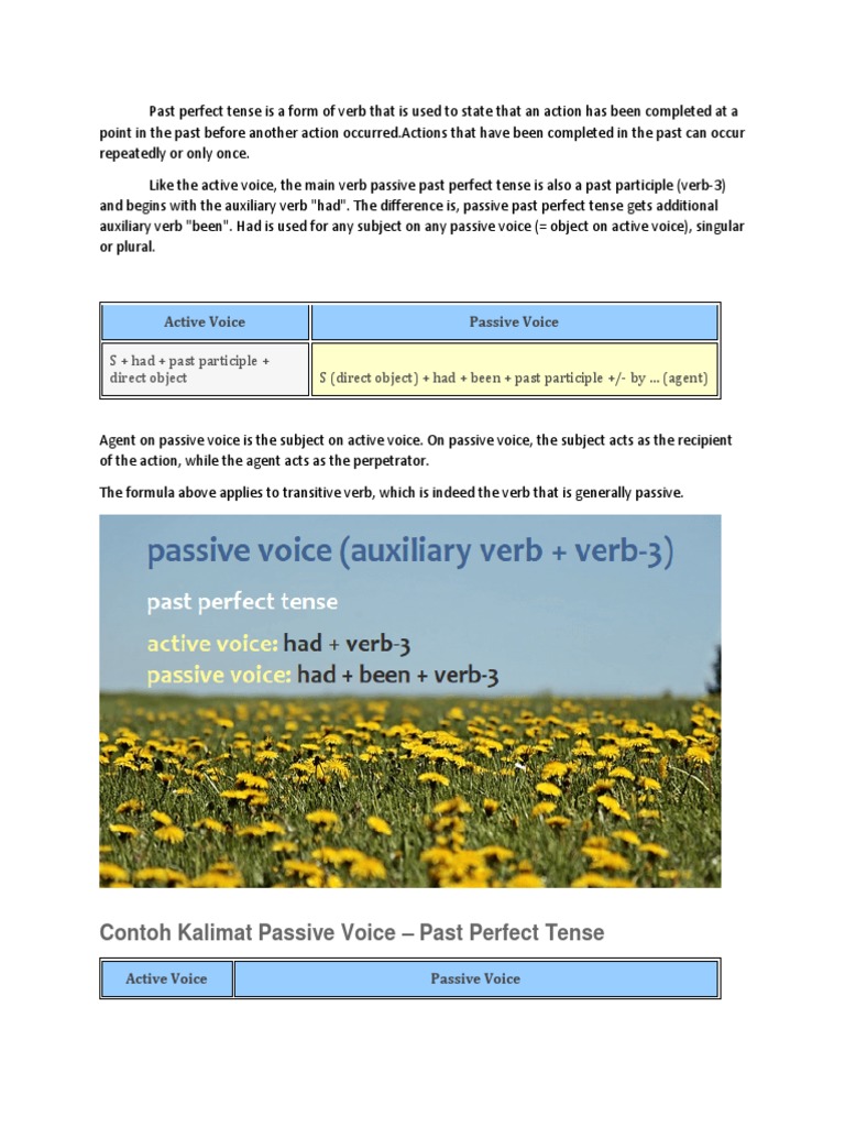 Contoh Kalimat Passive Voice – Past Perfect Tense