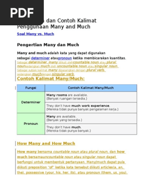 Pengertian dan Contoh Kalimat Penggunaan Many and Much | Question | Verb