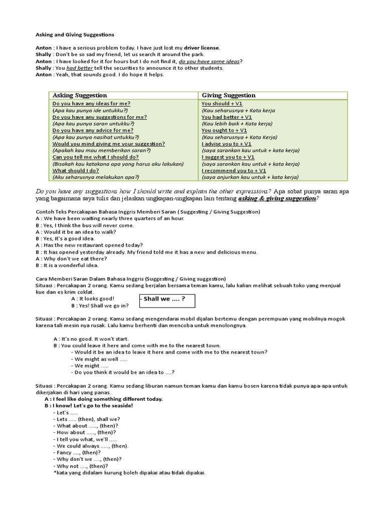 DOC) Asking and Giving Suggestion or Advice | Febri Rotama - Academia.edu