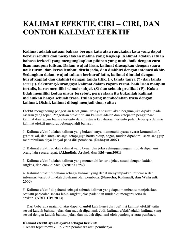 [Materi Lengkap] Kalimat Efektif: Pengertian, Syarat, Prinsip, Ciri, Dan Contoh - Rumah Pendidikan