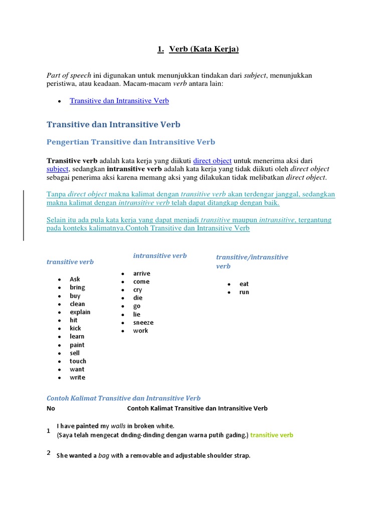Penjelasan Kalimat Transitive dan Intransitive Verb dan Contohnya. - DUNIA PENDIDIKAN