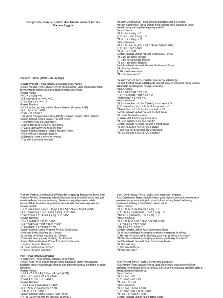 16 Tenses serta Penjelasan dalam Bentuk Verbal dan Nominal - Paja Tapuih