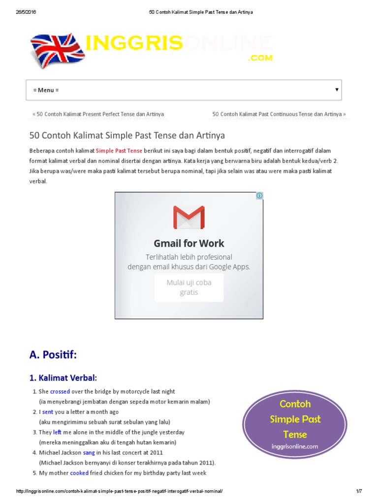 Contoh Kalimat Verbal Dan Nominal Simple Past Tense - Barisan Contoh