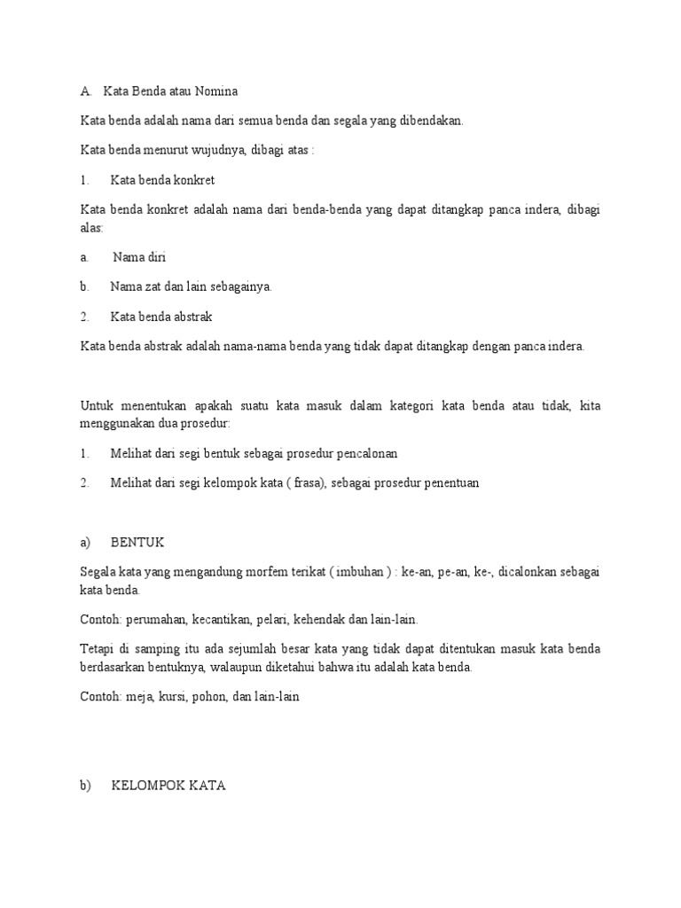 Contoh Kalimat Kata Benda - Definisi, dan Contoh B. Indonesia
