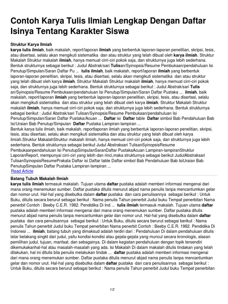 Contoh Karya Tulis Ilmiah Lengkap Dengan Daftar Isinya Tentang Karakter Siswa