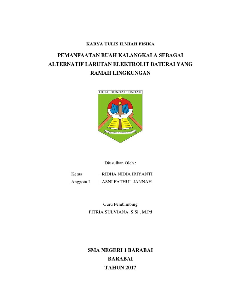 PDF) CONTOH PROPOSAL LOMBA KARYA TULIS ILMIAH NASIONAL di Pekan Ilmiah Fisika (PIF) XXVII Tingkat Nasional Tahun 2016 dengan judul : RUPA LIDI “RUMAH PEMBANGKIT LISTRIK PRIBADI” SEBAGAI ALTERNATIF DAN INOVASI PEMBANGKIT