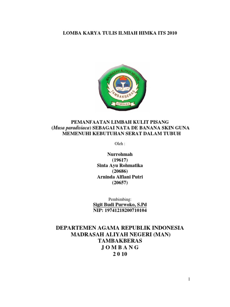 Kumpulan Contoh Karya Tulis Ilmiah Lengkap Format Microsoft Word Buku Kumpulan LKTI 2014