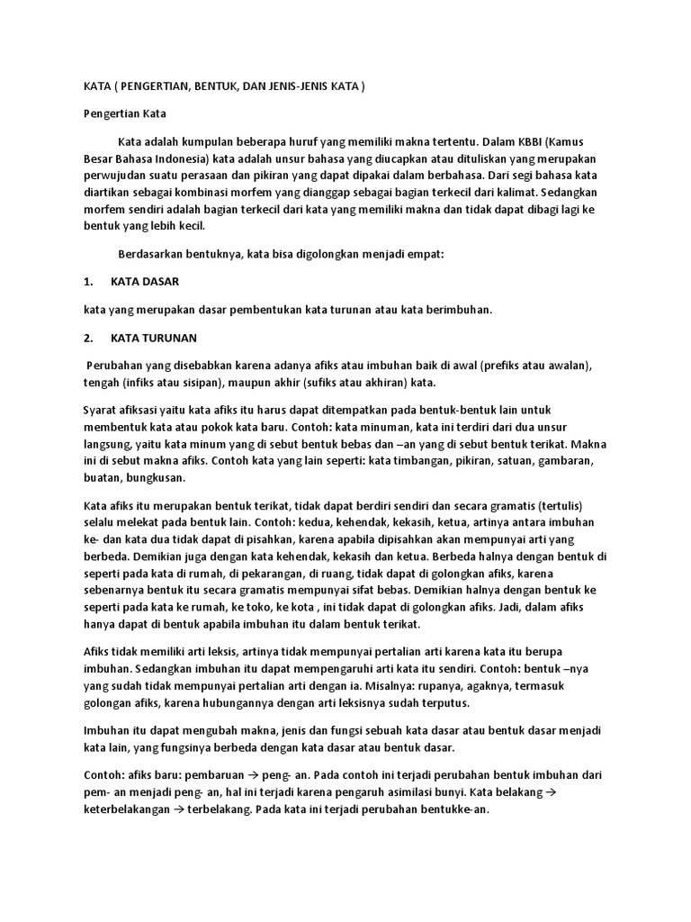 Kata: Pengertian, Tujuan, Fungsi, Jenis, Bentuk, dan Contoh Lengkap - Laman 6 dari 7 - FA Bahasa