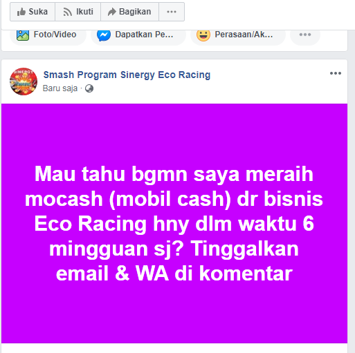Cara Promosi SMASH Eco Racing di Facebook | Rahasia Hidup Sukses Bebas Hutang Bahagia Kaya Sejahtera