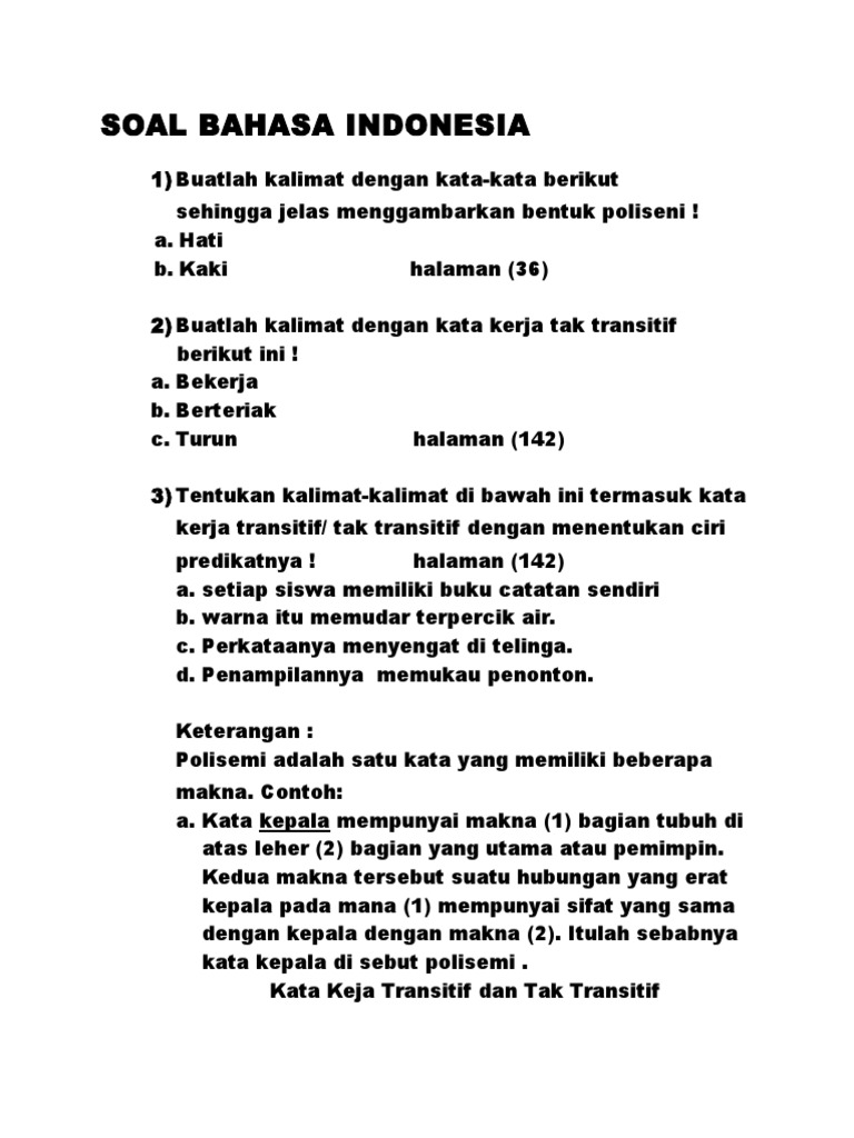 Soal Bahasa Indonesia