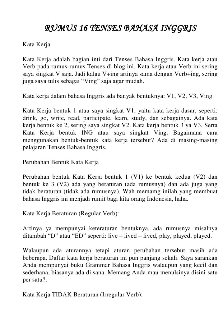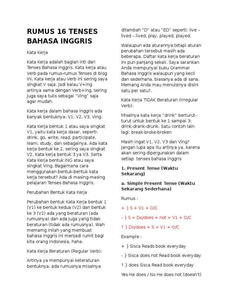 DOC) Rumus Tenses Bahasa Inggris | Baitz Amr - Academia.edu