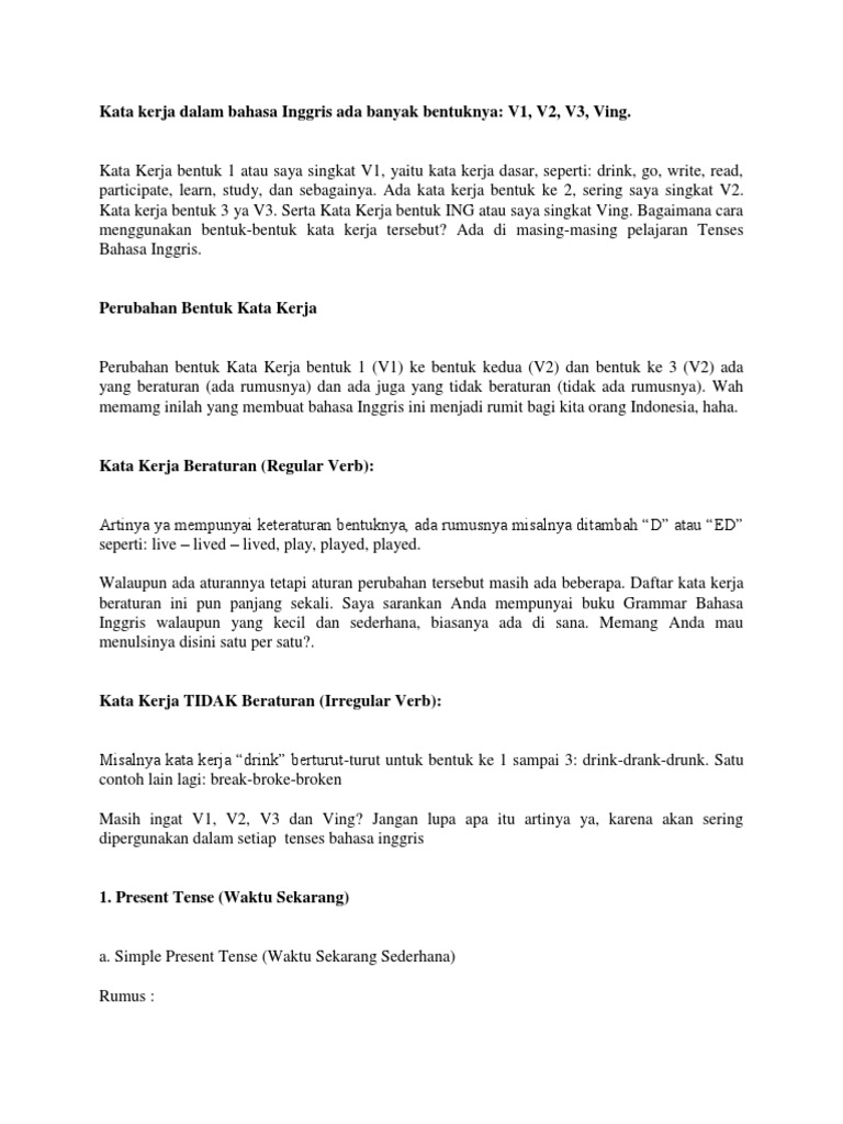 Bentuk Kata Kerja V1 V2 V3 - Berbagi Bentuk Penting