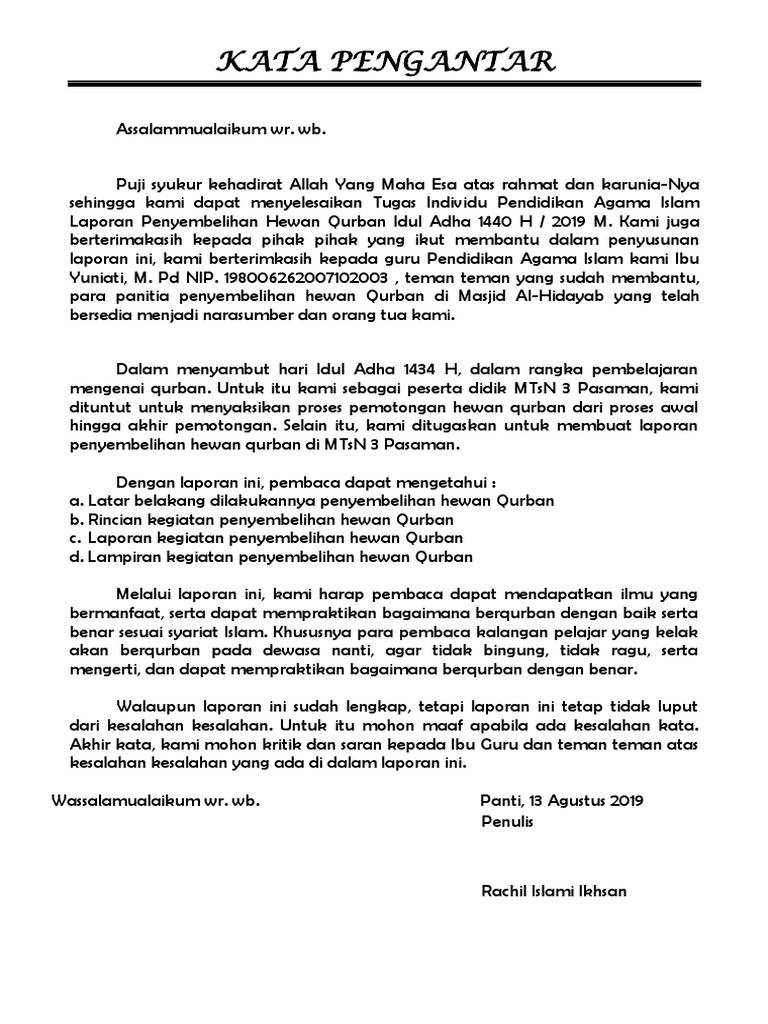 Contoh Kata Pengantar Idul Adha