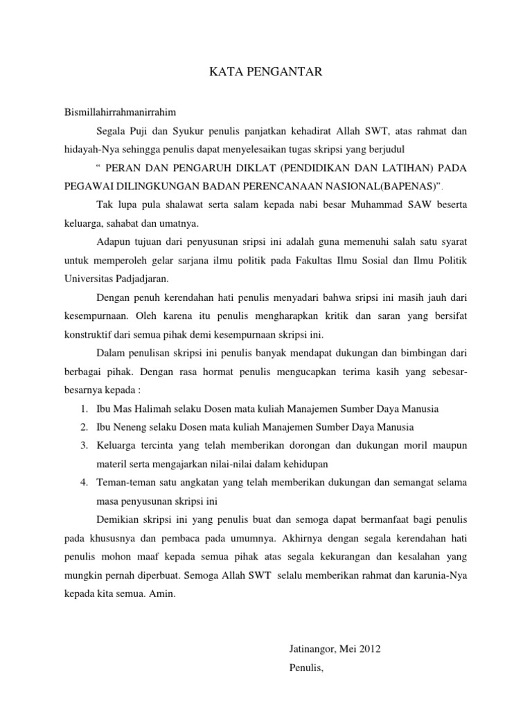 Kata Pengantar Skripsi Msdm