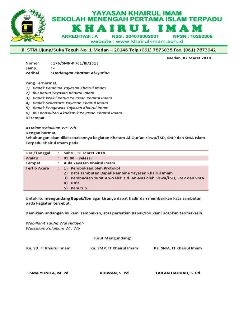 Contoh Undangan Khatam Quran | Guru Paud