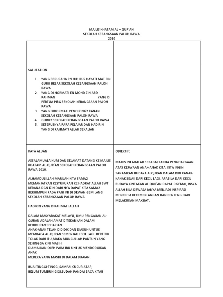 Contoh Kata Sambutan Acara Khatam Quran | Zona ilmu 5