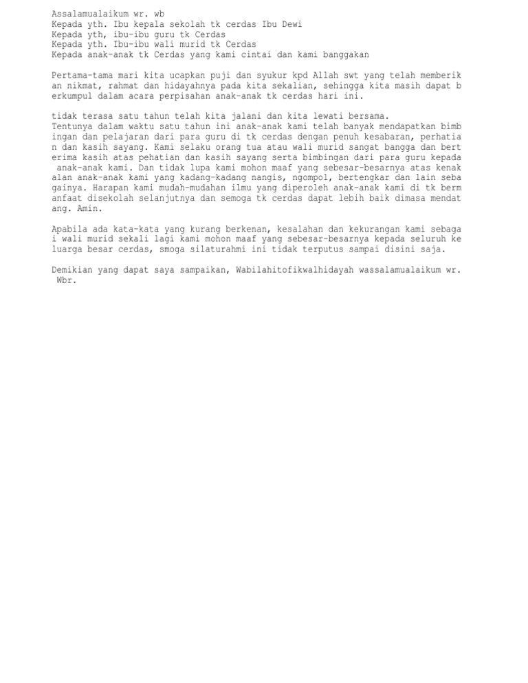 Sambutan Kepala Sekolah Tk Acara Perpisahan