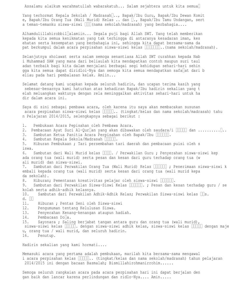 Contoh teks pembawa acara perpisahan