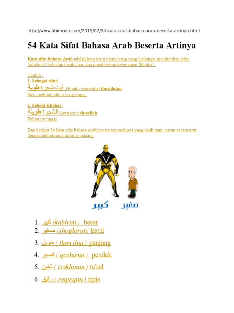 Kamus Arab: 54 Kata Sifat Bahasa Arab Beserta Artinya - Abimuda