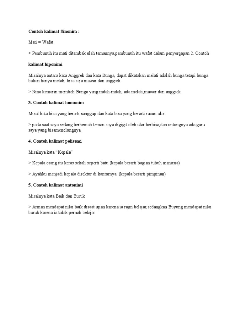 Contoh Kalimat Sinonim