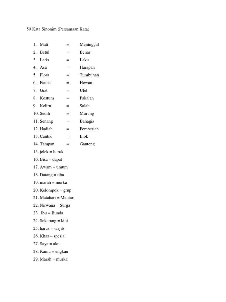 50 Kata Sinonim