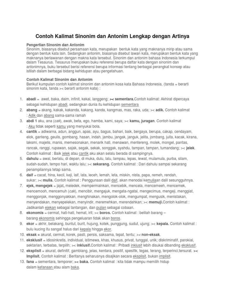Contoh Sinonim Dan Antonim