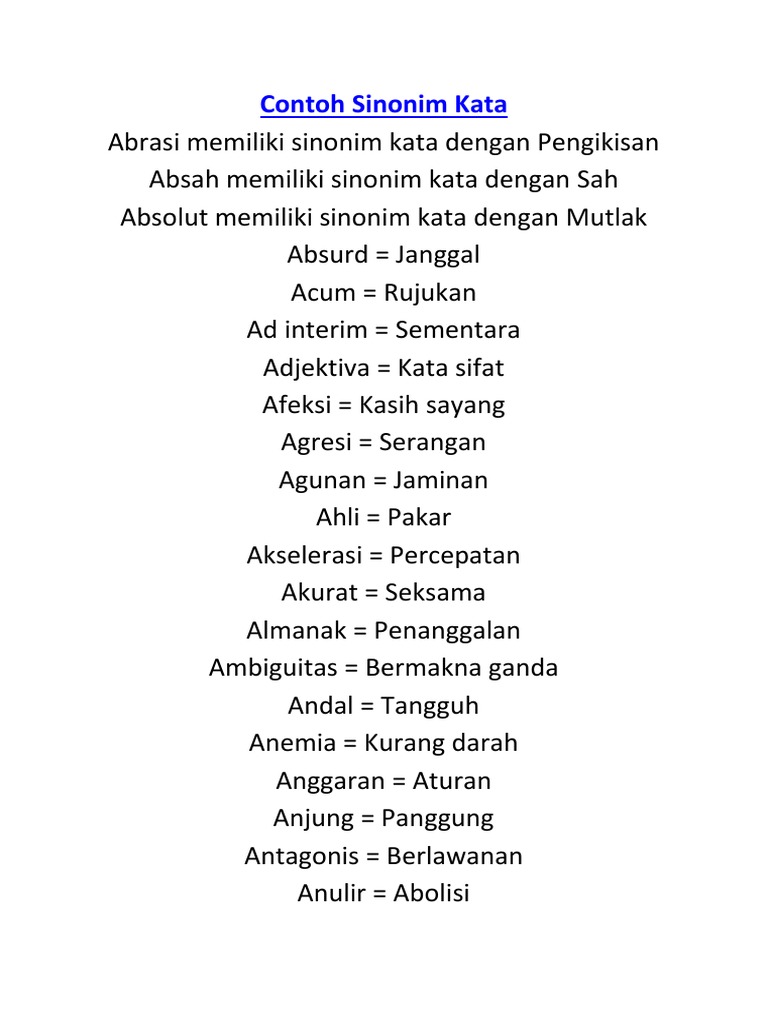 345+ Contoh Kata Sinonim Lengkap dari A sampai Z