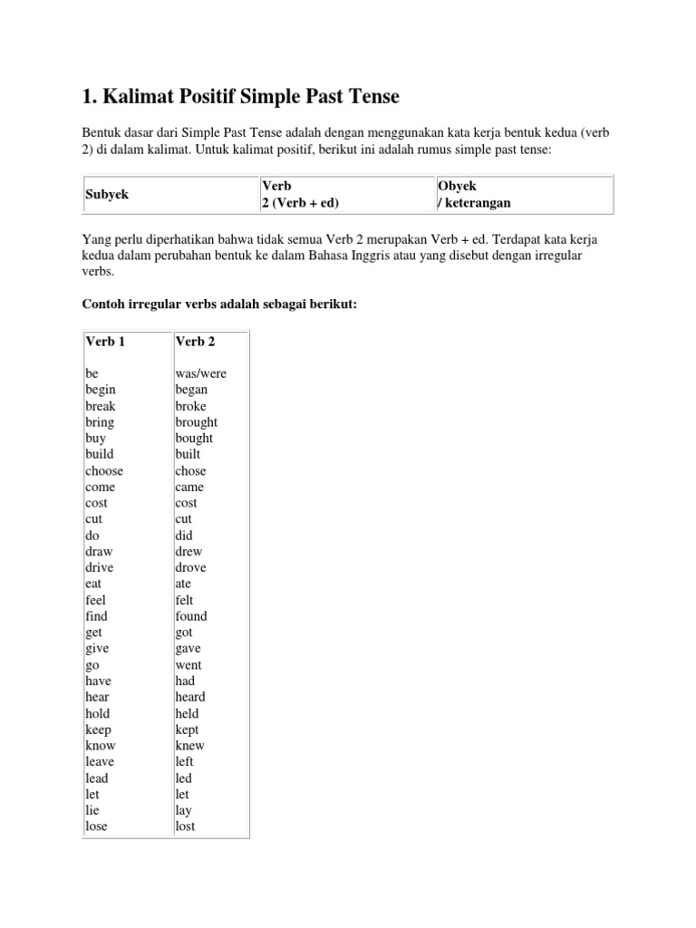 DOC) Rumus kalimat Simple Past Tense | Chelsea Abigail - Academia.edu