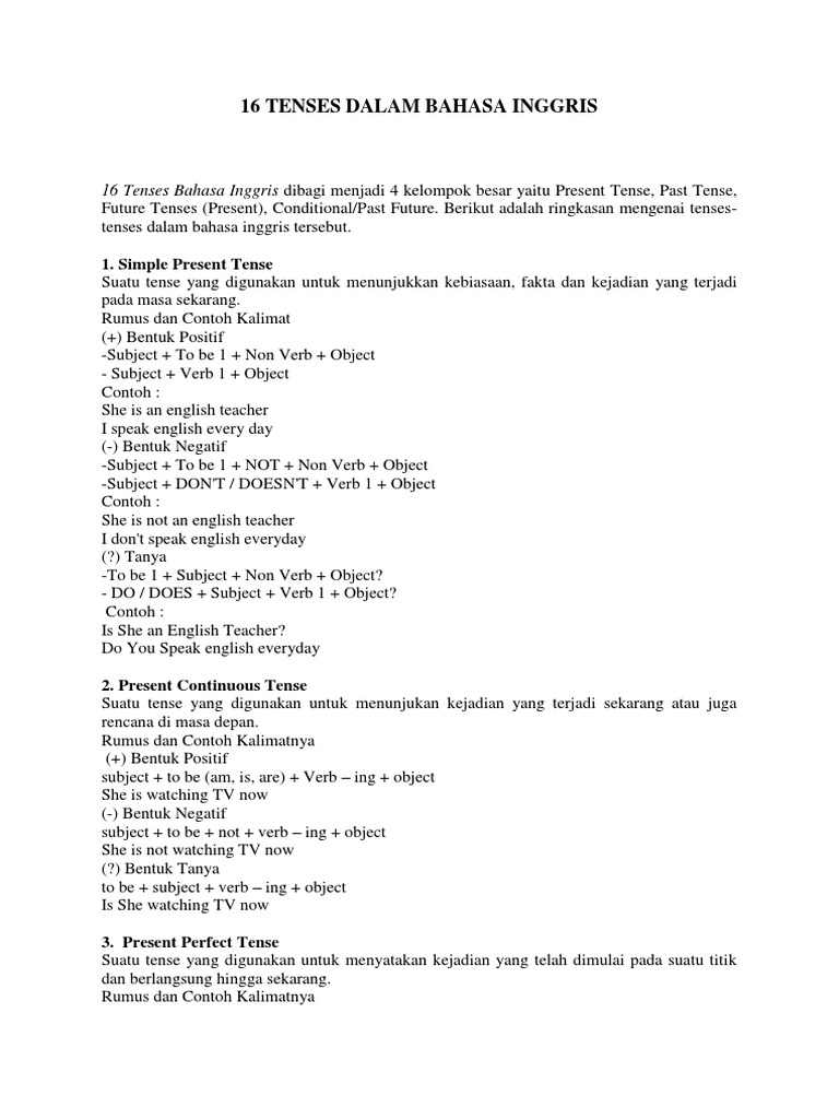 DOC) Rumus Tenses Bahasa Inggris | Baitz Amr - Academia.edu