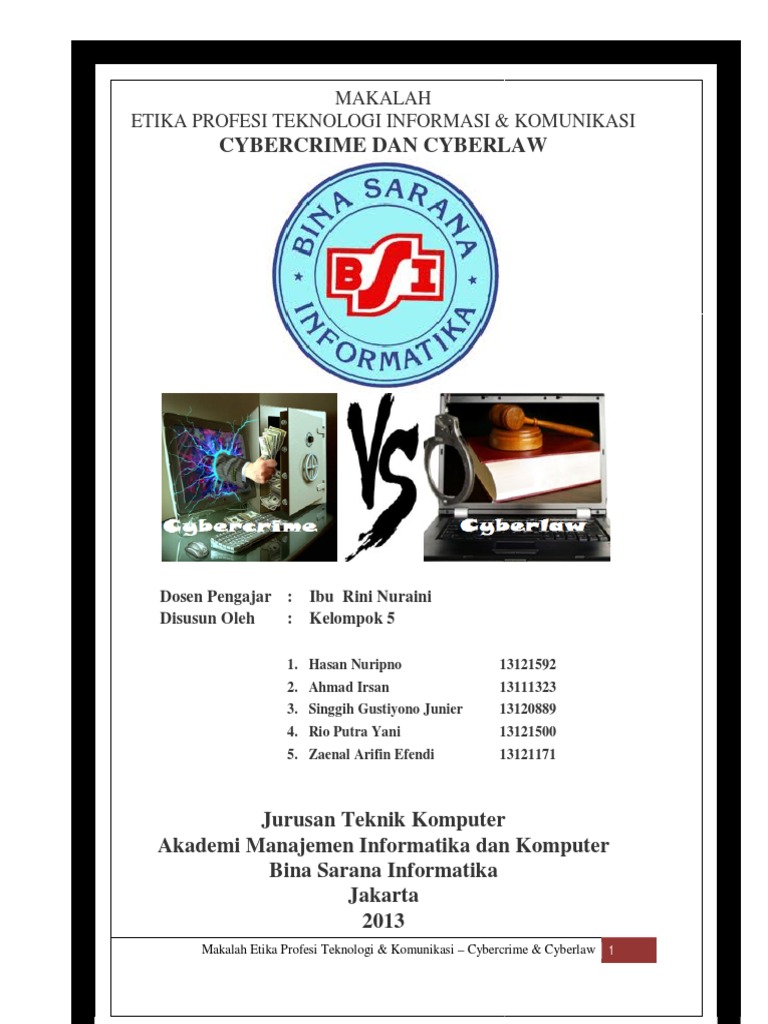Makalah Etika Profesi Teknologi Informasi Dan Komunikasi - Cybercrime & Cyberlaw