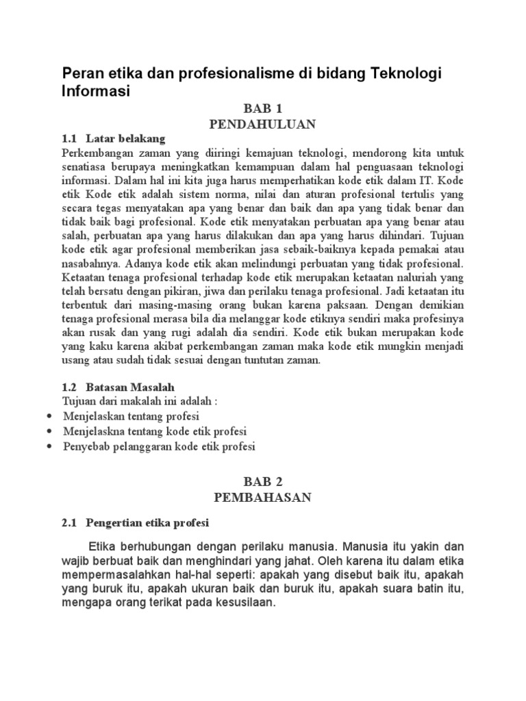 DOC) MAKALAH ETIKA PROFESI DALAM BIDANG TI | Imas Nurhaerani - Academia.edu