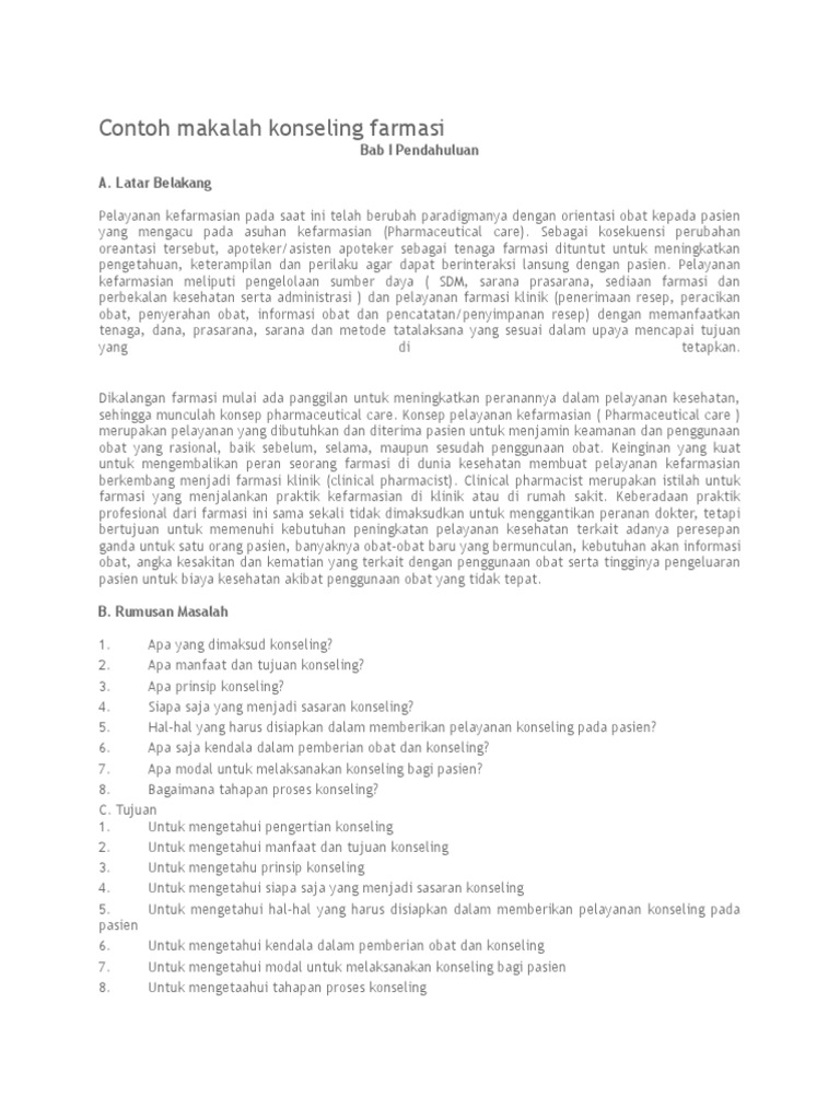 Contoh Makalah Konseling Farmasi