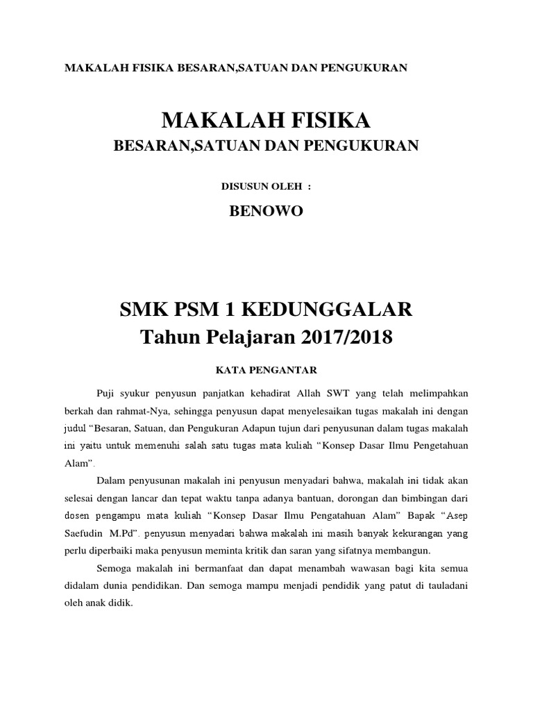 Contoh Makalah Fisika Besaran Dan Satuan - Barisan Contoh