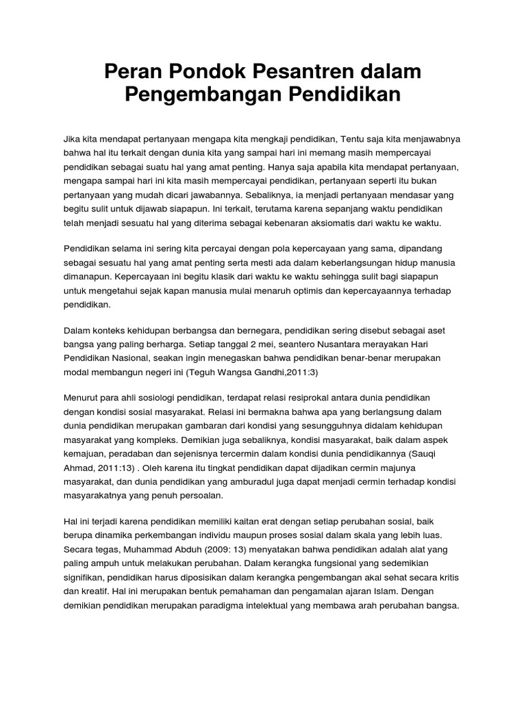 Peran Pondok Pesantren dalam Pengembangan Pendidikan