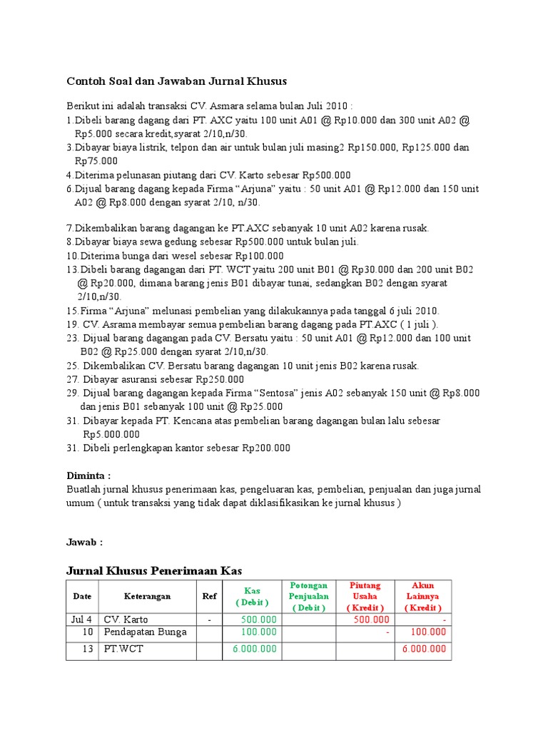 Contoh Soal Dan Jawaban Jurnal Khusus