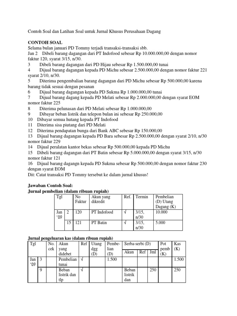 Soal - Jawaban Latihan Untuk Jurnal Khusus Perusahaan Dagang