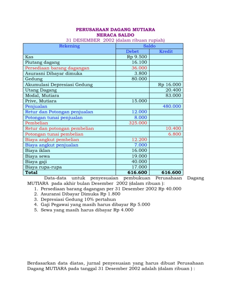 [Lengkap] Contoh Soal Jurnal Penyesuaian Perusahaan Dagang