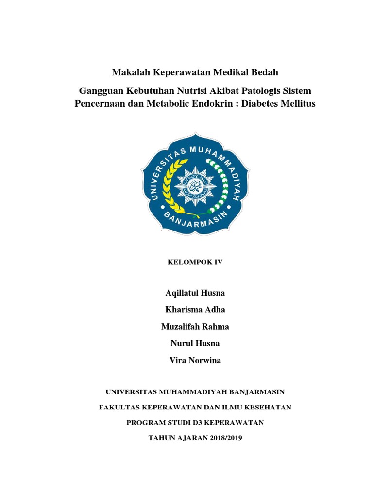 Makalah Keperawatan Medikal Bedah Gangguan Kebutuhan Nutrisi Akibat Patologis Sistem Pencernaan dan Metabolic Endokrin: Diabetes Mellitus