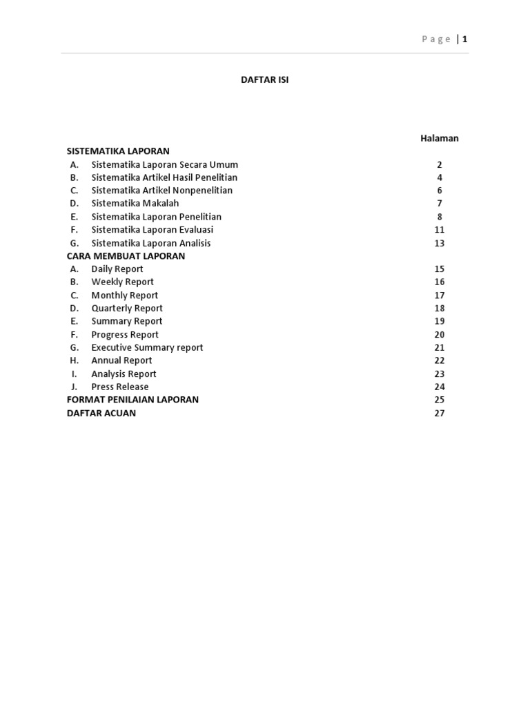 8+ Contoh Daftar Isi Laporan PKL, Magang, Penelitian Dll
