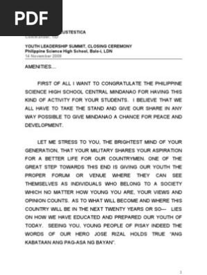 Remarks at Youth Leadership Summit | Philippines | Leadership
