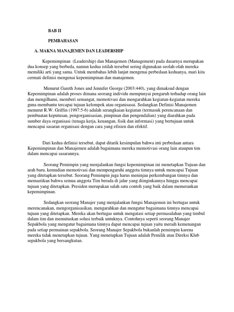 Bab Ii Pembahasan A. Makna Manajemen Dan Leadership
