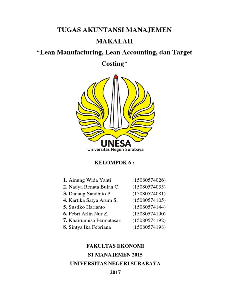 makalah lean accounting.docx - Nama Anggota Mata Kuliah:Dwi Mulyandari 20170420320 Yulinda Aji Pratiwi 20170420328 Fatchiyatun Nafilah 20170420330 Moh | Course Hero