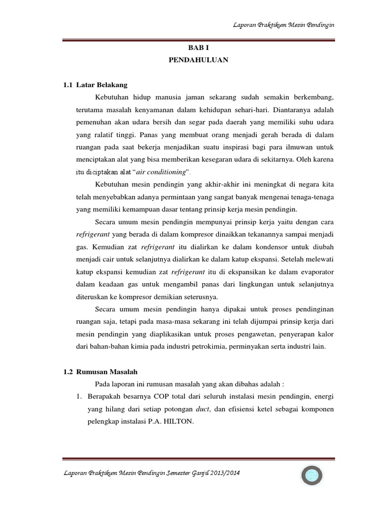 Tugas Laporan Praktikum Mesin Pendingin - [DOC Document]